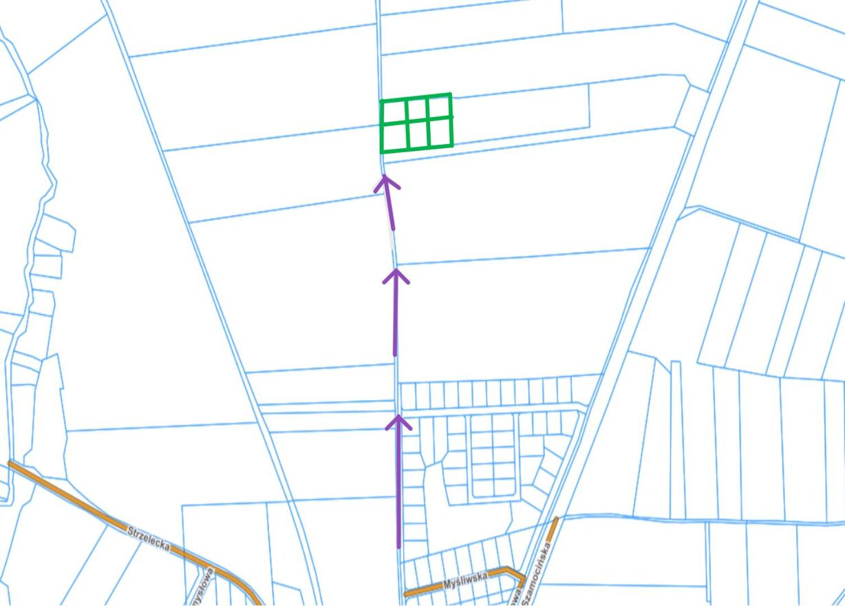 Do działek dojedziemy drogą wewnętrzną (szutrową) nr 201 obręb Młynary.